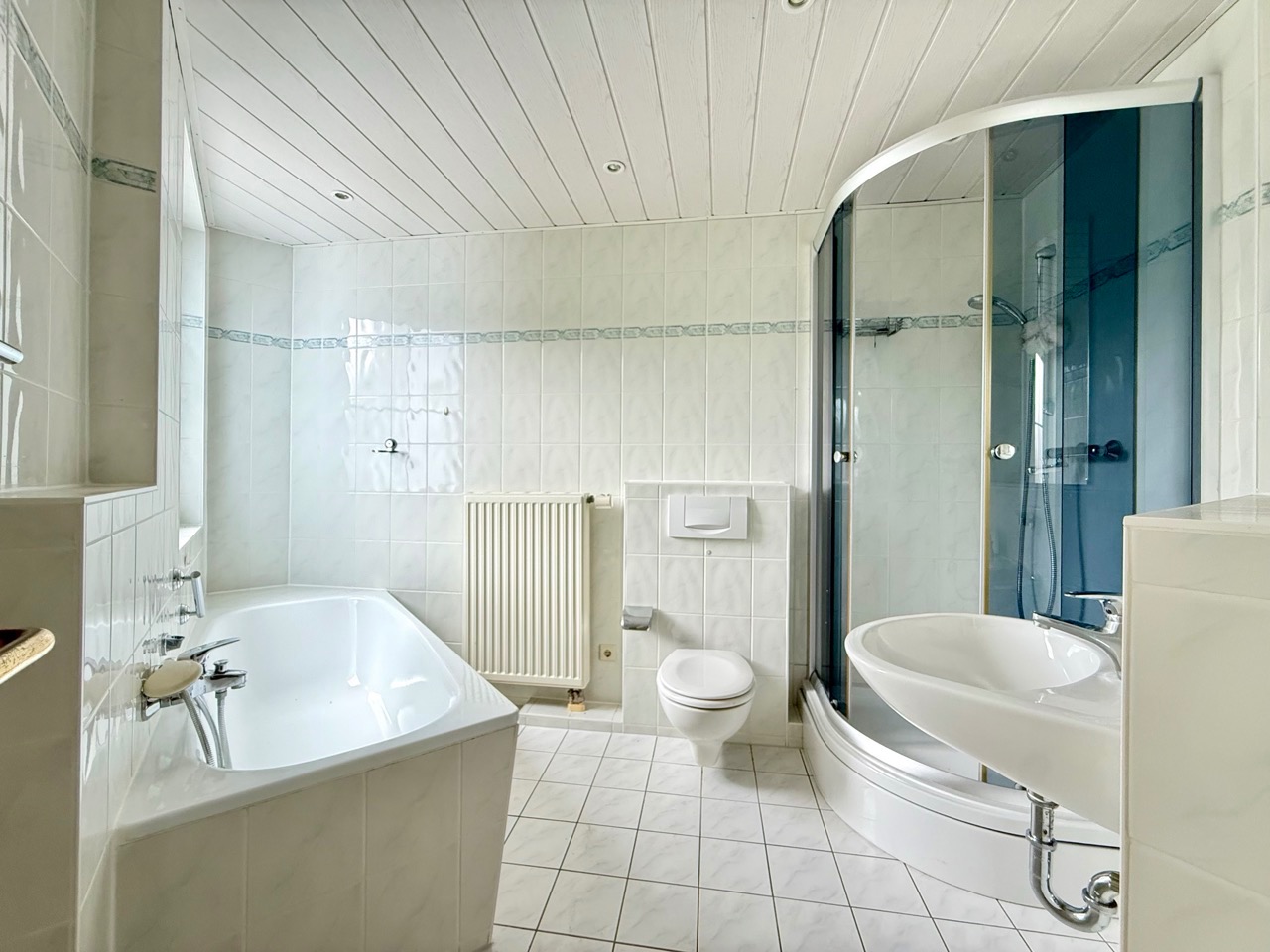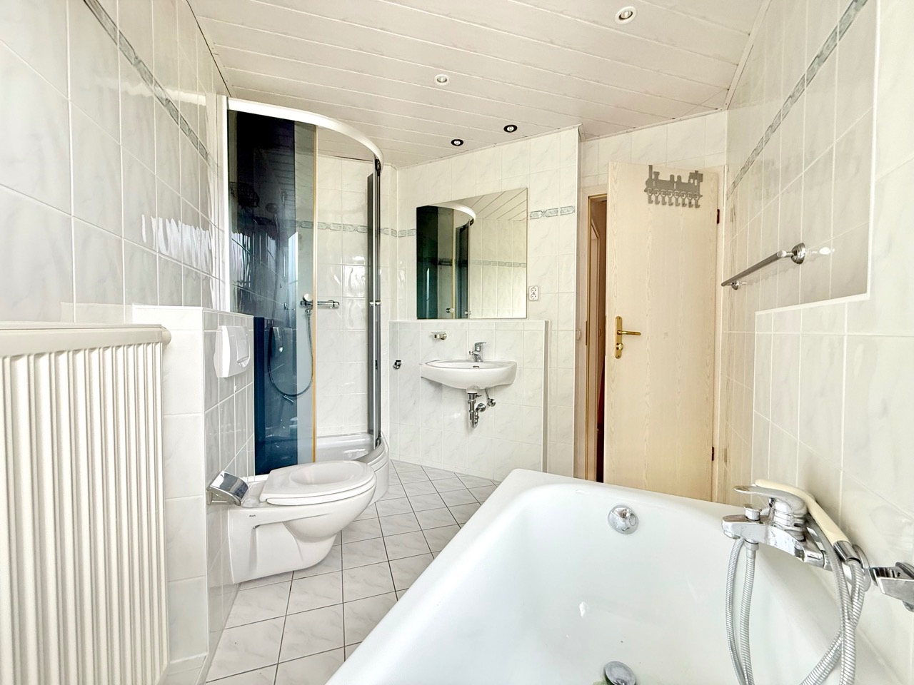 – Bad im OG mit Wanne, Dusche, Fenster, WC, Waschbecken)