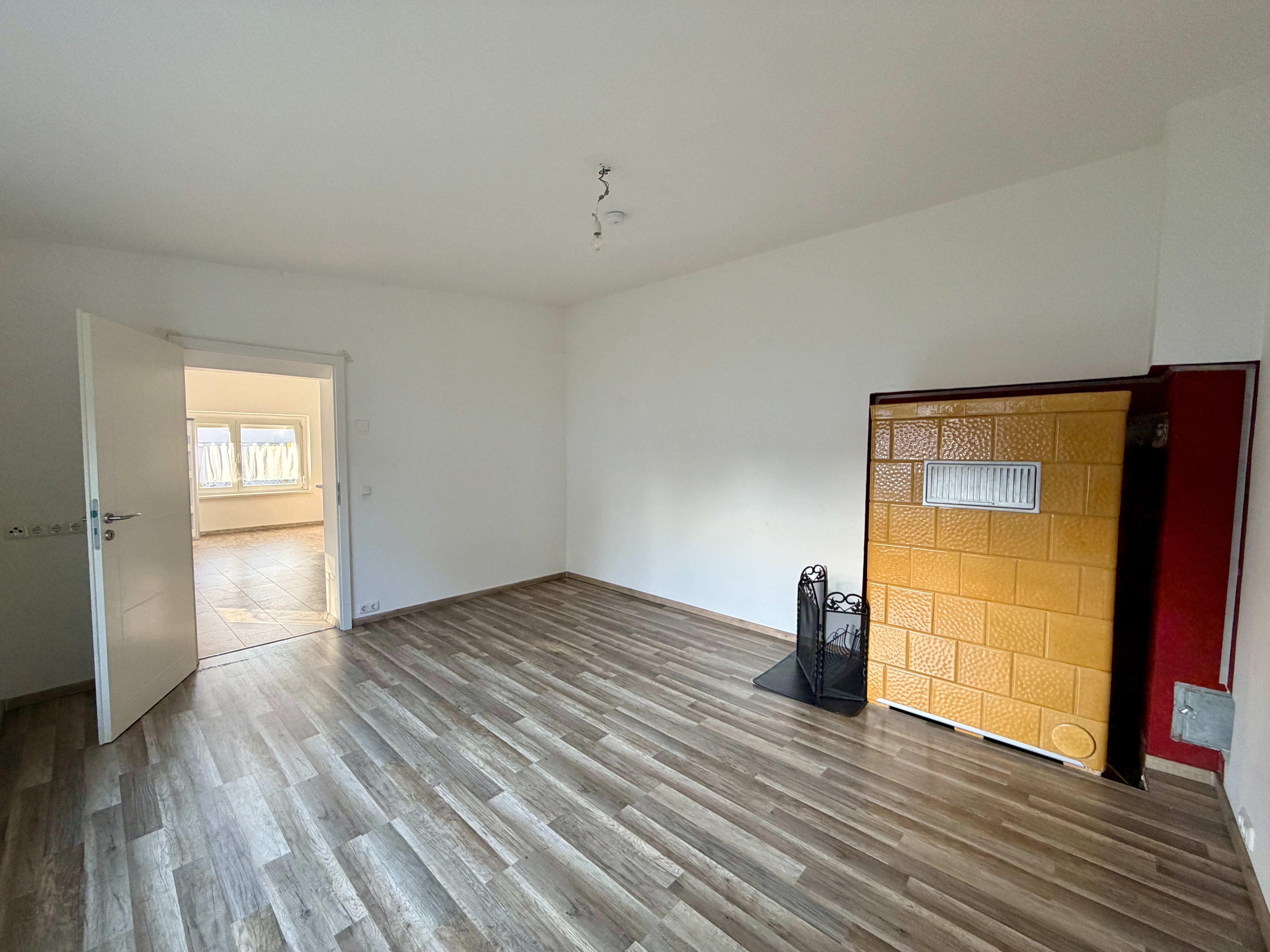 Veranda, Diele, Bad (mit Wanne und Dusche), großes Schlafzimmer, große Wohnküche mit Einbauküche, Wohnzimmer mit zusätzlichem Kacheloffen