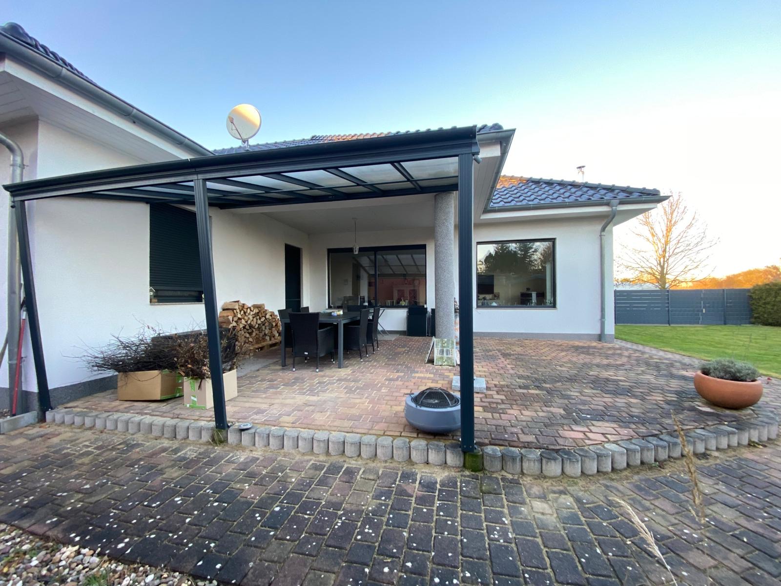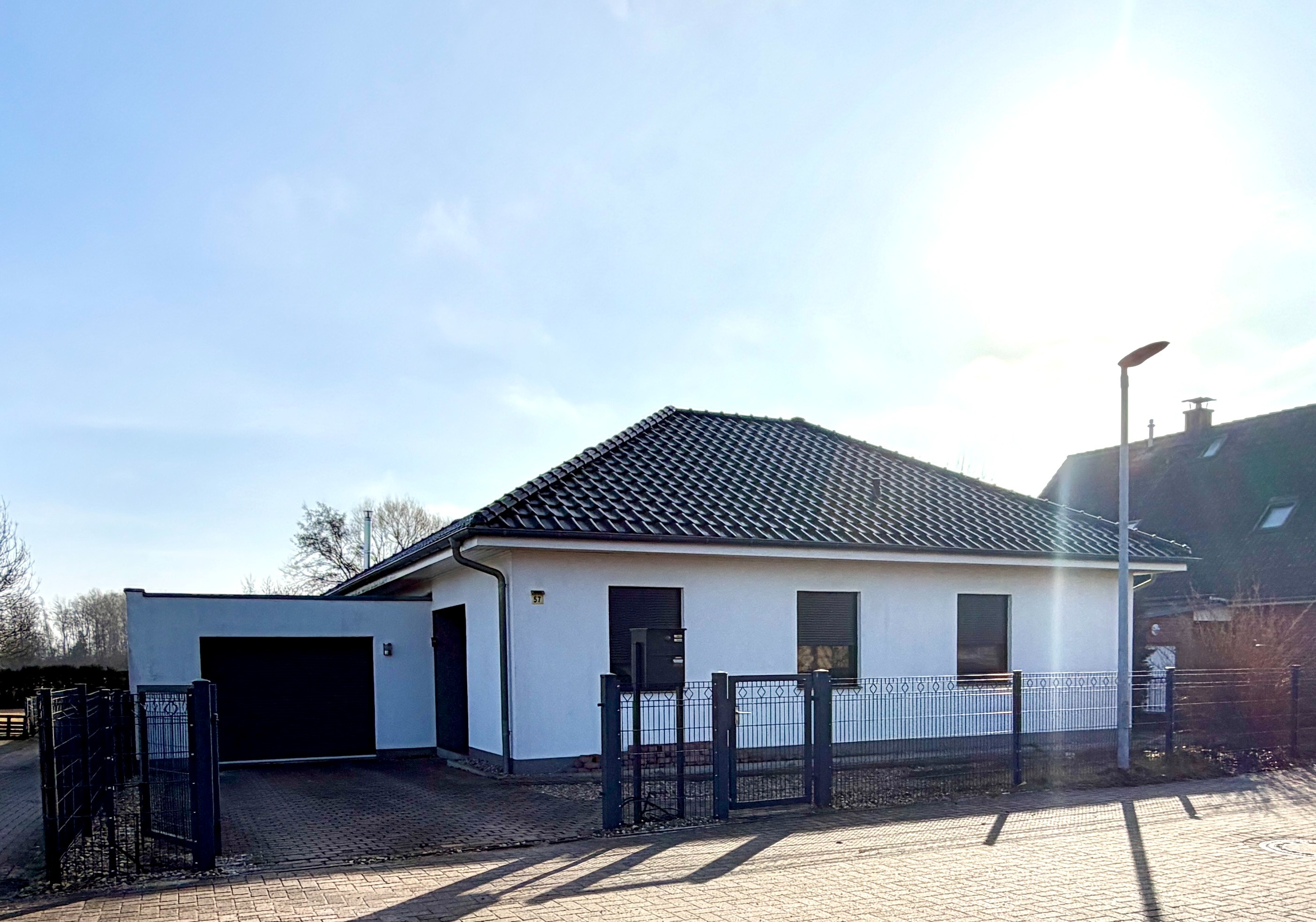 In dem gepflegten modernem Einfamilienhaus mit einer gesamten Wohnfläche von ca. 146 qm Wohnfläche (inkl. anteiliger Terrassen, im Wohnhaus ca. 120 qm Wohnfläche), und einer Energieeffizienzklasse A aus dem Baujahr 2011 findet sich genügend Platz für eine kleine Familie. Das Haus verfügt über zwei Schlafzimmer, ein Badezimmer und ein großes Wohnzimmer (ca. 42 qm= mit offener Wohnküche (zusätzlich ca. 10 qm) inkl. hochwertiger Einbauküche (teilweise Bosch Geräte). Zusätzlich bietet die große Diele und der HWR genügend Stauraum. Mit einer Dachform als Walmdach und einer Massivbauweise eignet sich das Haus optimal für eine langfristige Nutzung. Zudem bietet das Grundstück von 680 m² ausreichend Platz, zwei Parkplätze in der Einfahrt und die große beheizte Garage mit Direktzugang zum Haus bieten ausreichend Platz für Pkw, Motorrad, Fahrrad, Hobby u.s.w..