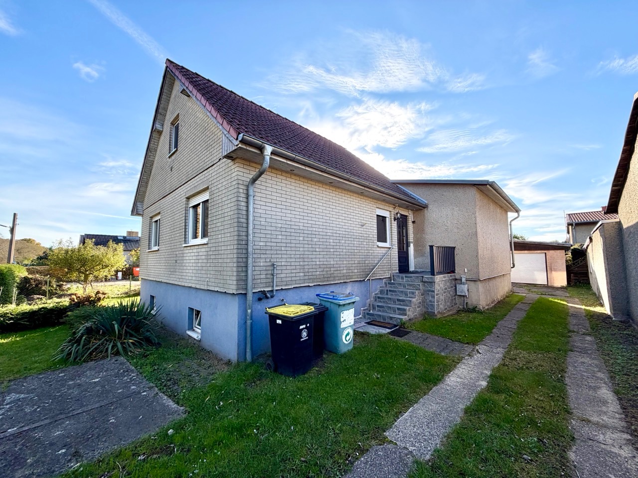 Angeboten wird eine teilunterkellertes Einfamilienhaus aus dem Jahr ca. 1937, mit einer Wohnfläche von ca. 112 m² auf einem 905 m² großen Grundstück. Das ursprüngliche (unterkellerte) Haus wurde ca. 1937 in Holzständerbauweise errichtet und später durch einen Anbau (nicht unterkellert) in massiver Bauweise erweitert. Zusätzliche befinden sich auf dem Grundstück eine Garage und Nebengelass. Beheizt wird das Haus durch eine Ölheizung von ca. 1997.